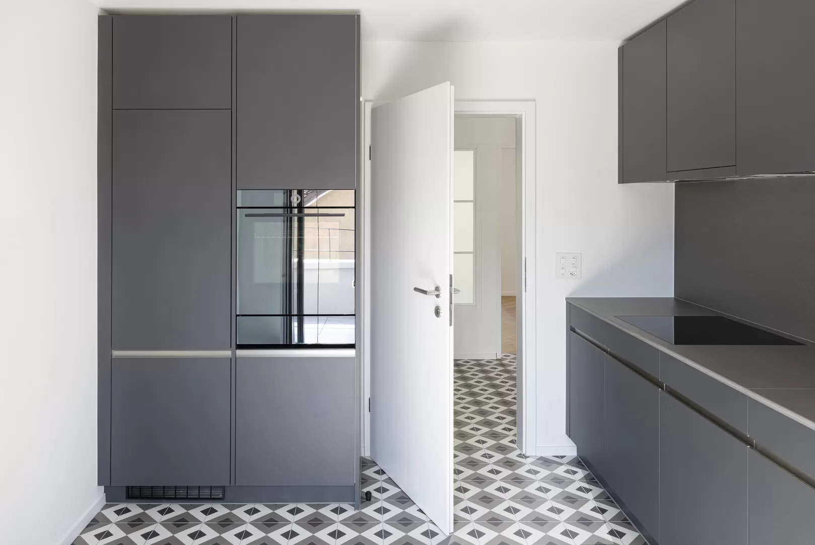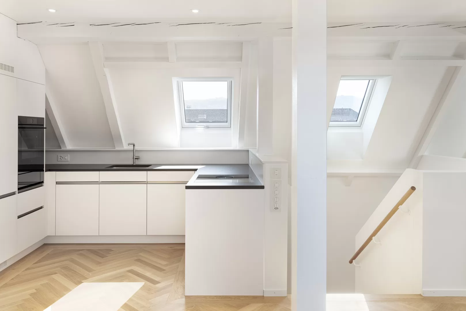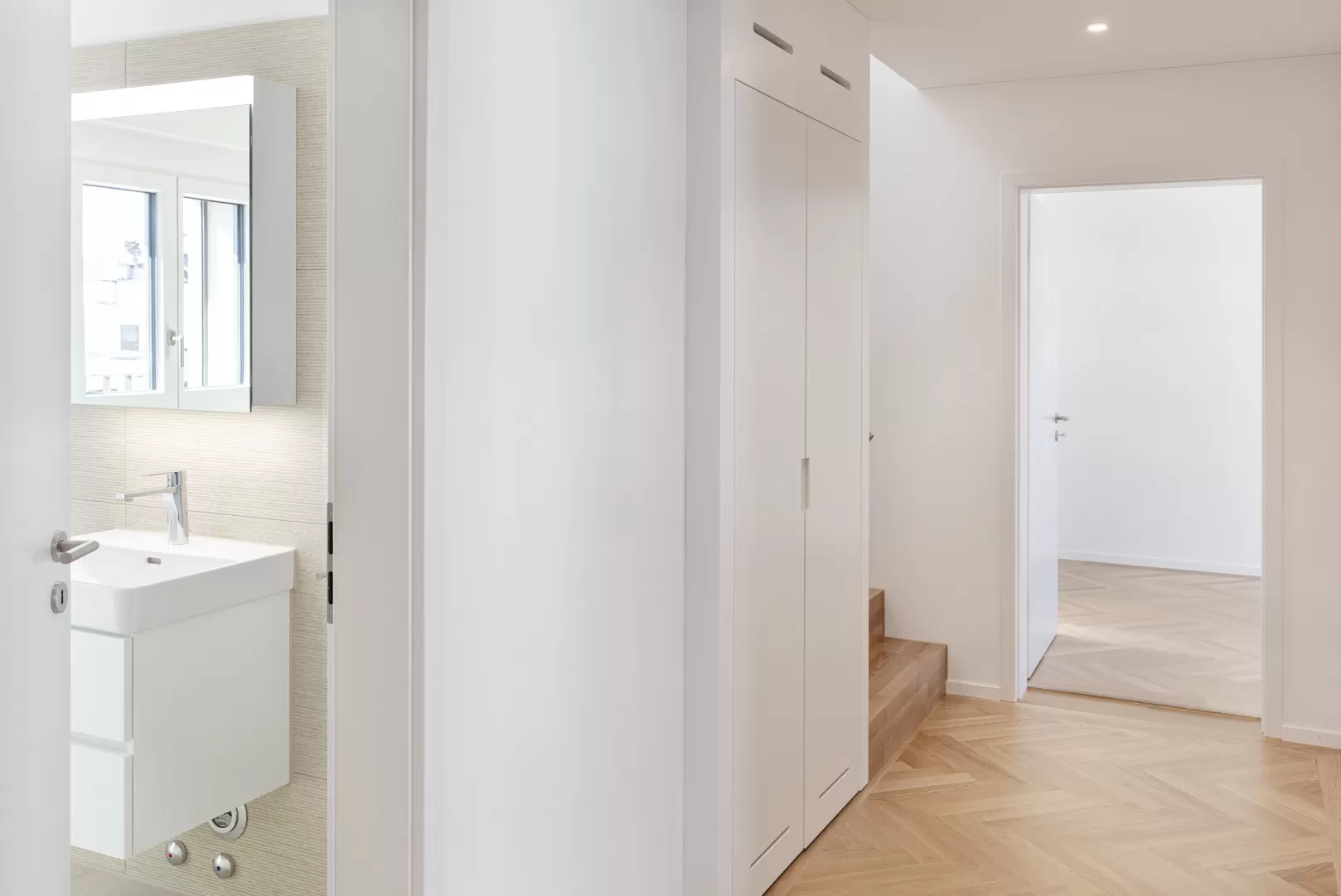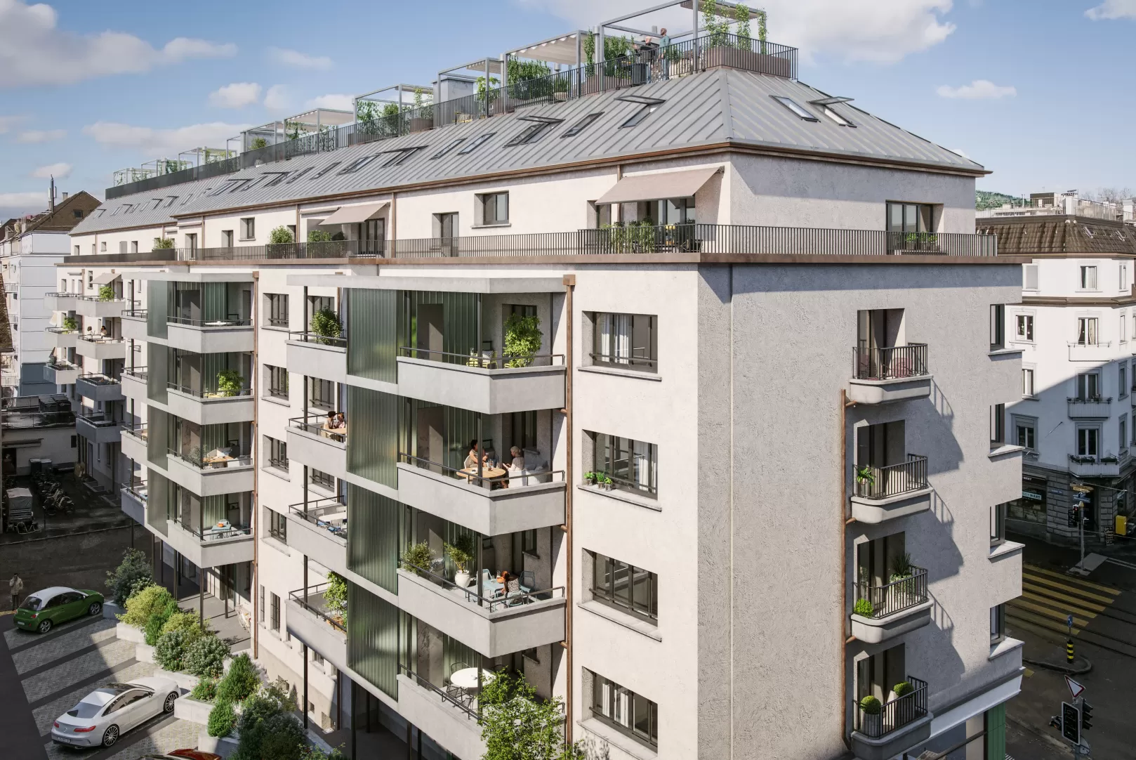 Mit der umfassenden Strangsanierung erhält die Liegenschaft nun eine zeitgemässe Erneuerung. Nasszellen und Küchen werden vollständig ersetzt, Boden-, Wand- und Deckenbeläge aufgefrischt und ein neuer Velokeller geschaffen. Die Fassadensanierung sowie die Dachaufstockung sorgen sowohl für eine energetische Verbesserung als auch für eine optische Aufwertung.