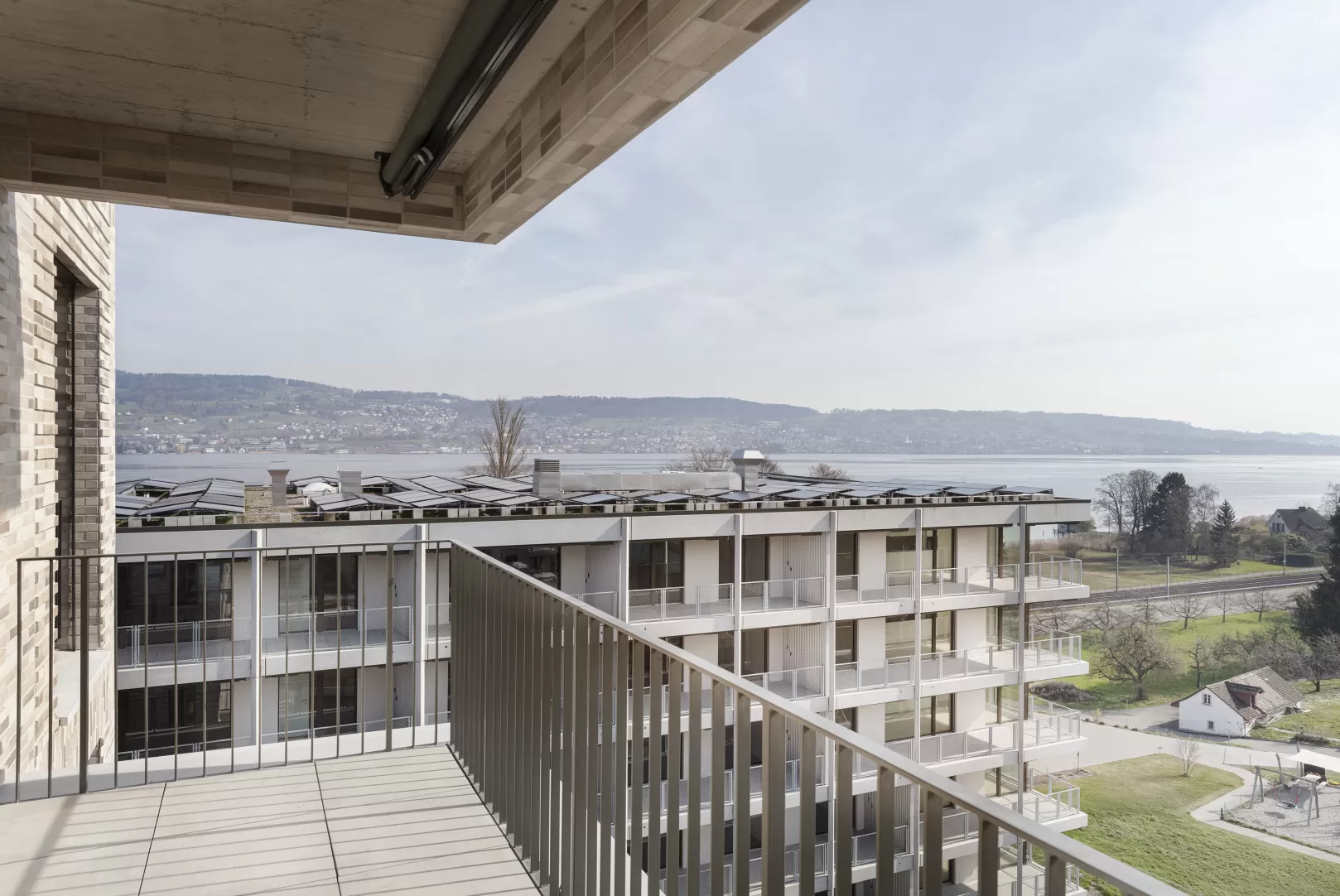 Im Rahmen der Totalunternehmerleistung wurde das Projekt gezielt weiterentwickelt, insbesondere durch eine zusätzliche Verdichtung sowie die Optimierung des Wohnungsmixes, um unterschiedlichen Wohnbedürfnissen gerecht zu werden. Die durchdachte Architektur und die hochwertige Materialisierung prägen eine exklusive Wohnatmosphäre mit eindrucksvollem Ausblick auf die Halbinsel Au und den Zürichsee.