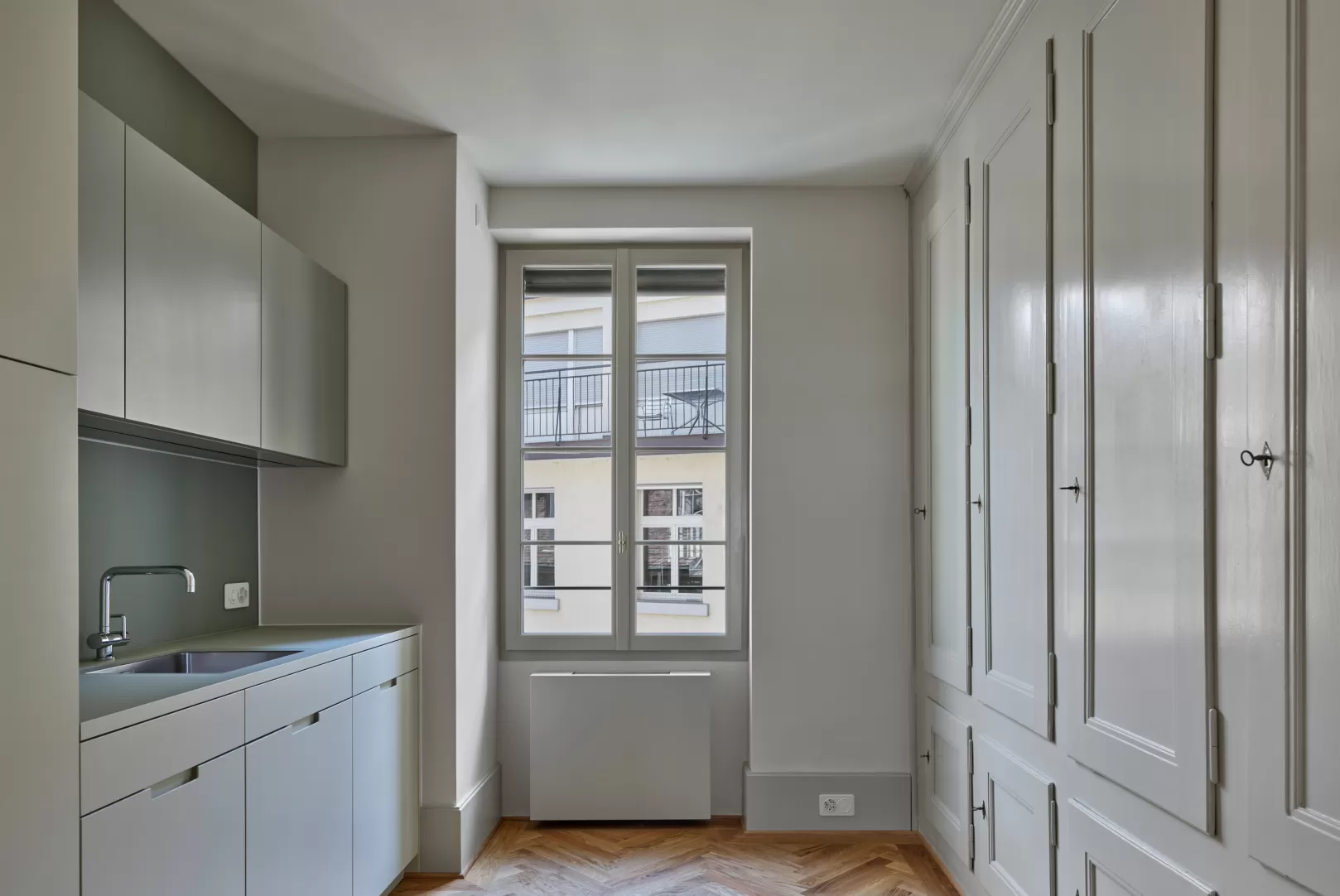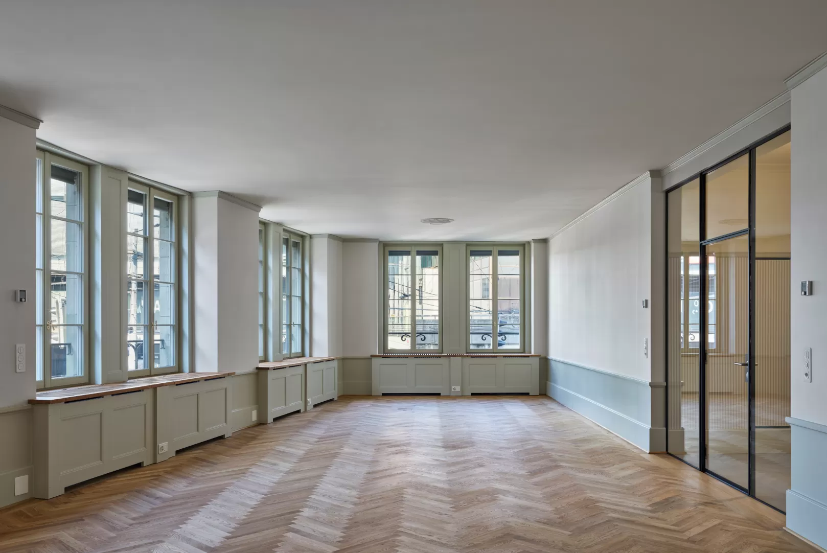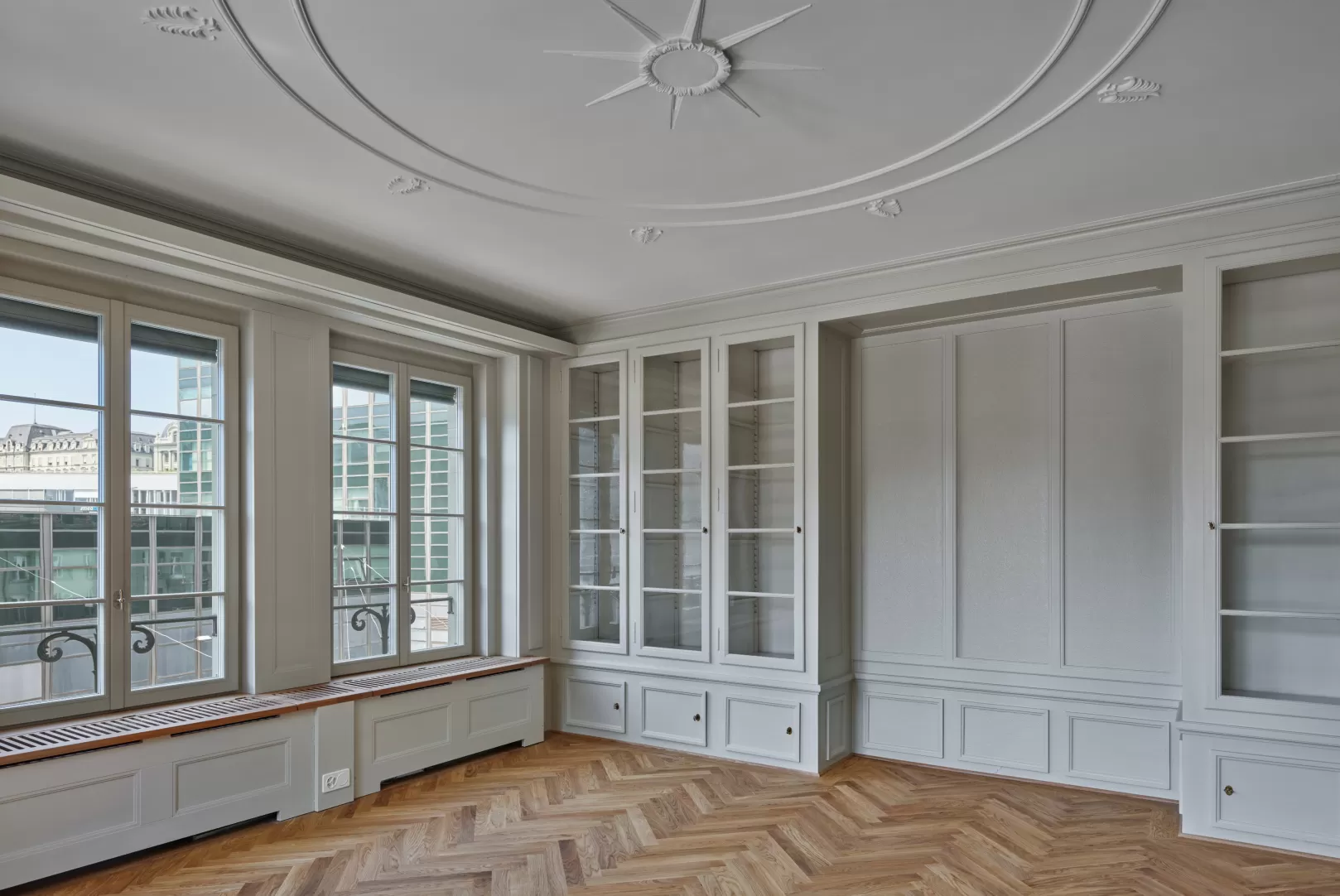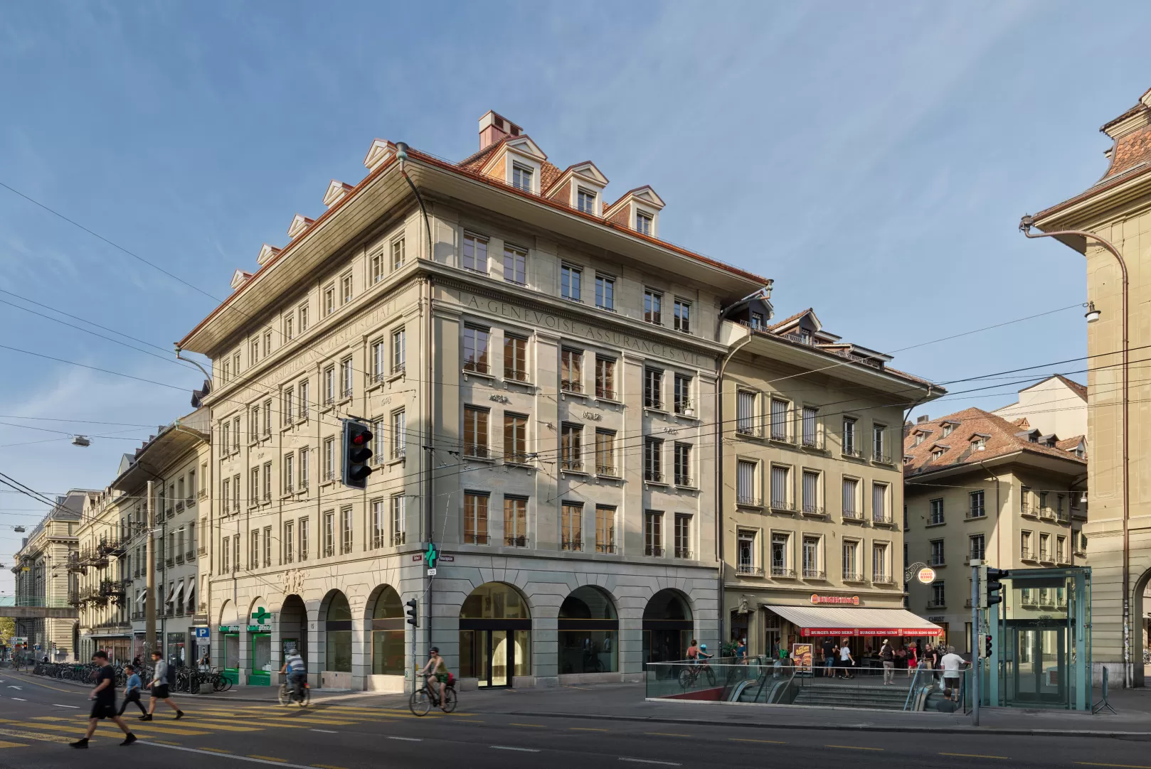 Das 1923 errichtete Geschäftsgebäude Bollwerk 15 befindet sich an prominenter Lage unmittelbar beim Berner Hauptbahnhof im Perimeter des UNESCO-Weltkulturerbes. Anspruchsvolle denkmalpflegerische Auflagen erforderten eine enge Zusammenarbeit mit den zuständigen Behörden. Ziel der Sanierung war eine zeitgemässe Nutzung für Büro- und Gewerbe, wofür umfangreiche Gebäudetechnik nahezu unsichtbar in die historische Substanz integriert wurde. Besondere Aufmerksamkeit galt ebenfalls der historischen Bausubstanz, die durch zahlreiche Umbauten der letzten hundert Jahre stark belastet war. Die Sandsteinfassade wurde sorgfältig instand gesetzt, das Dach bis auf die Grundkonstruktion erneuert und mit den historischen Biberschwanzziegeln wieder eingedeckt. Zudem wurden sämtliche Fenster ersetzt und auch das Treppenhaus und der Eingangsbereich erfuhren eine behutsame Rückführung zu ihrer ursprünglichen Identität.