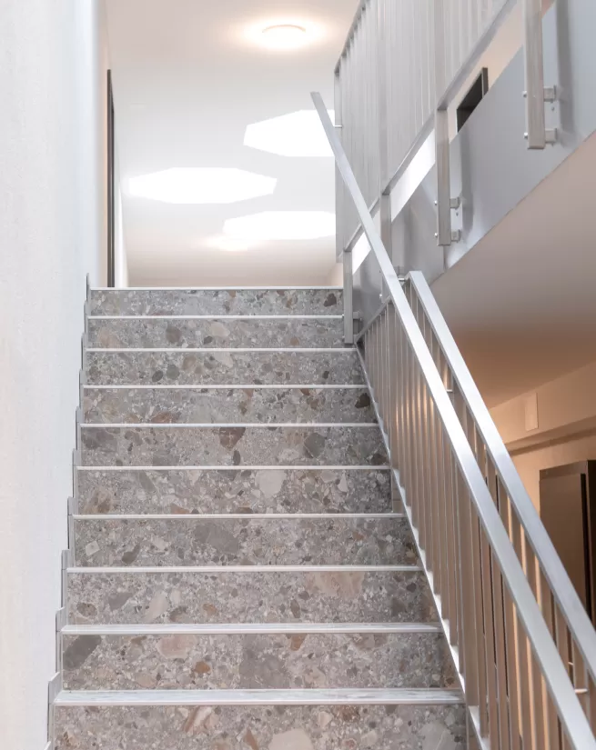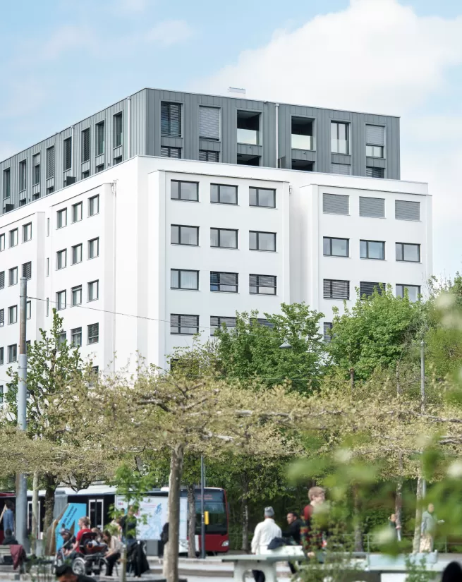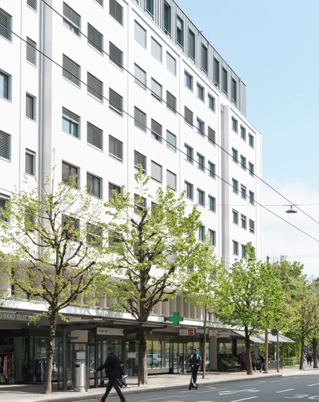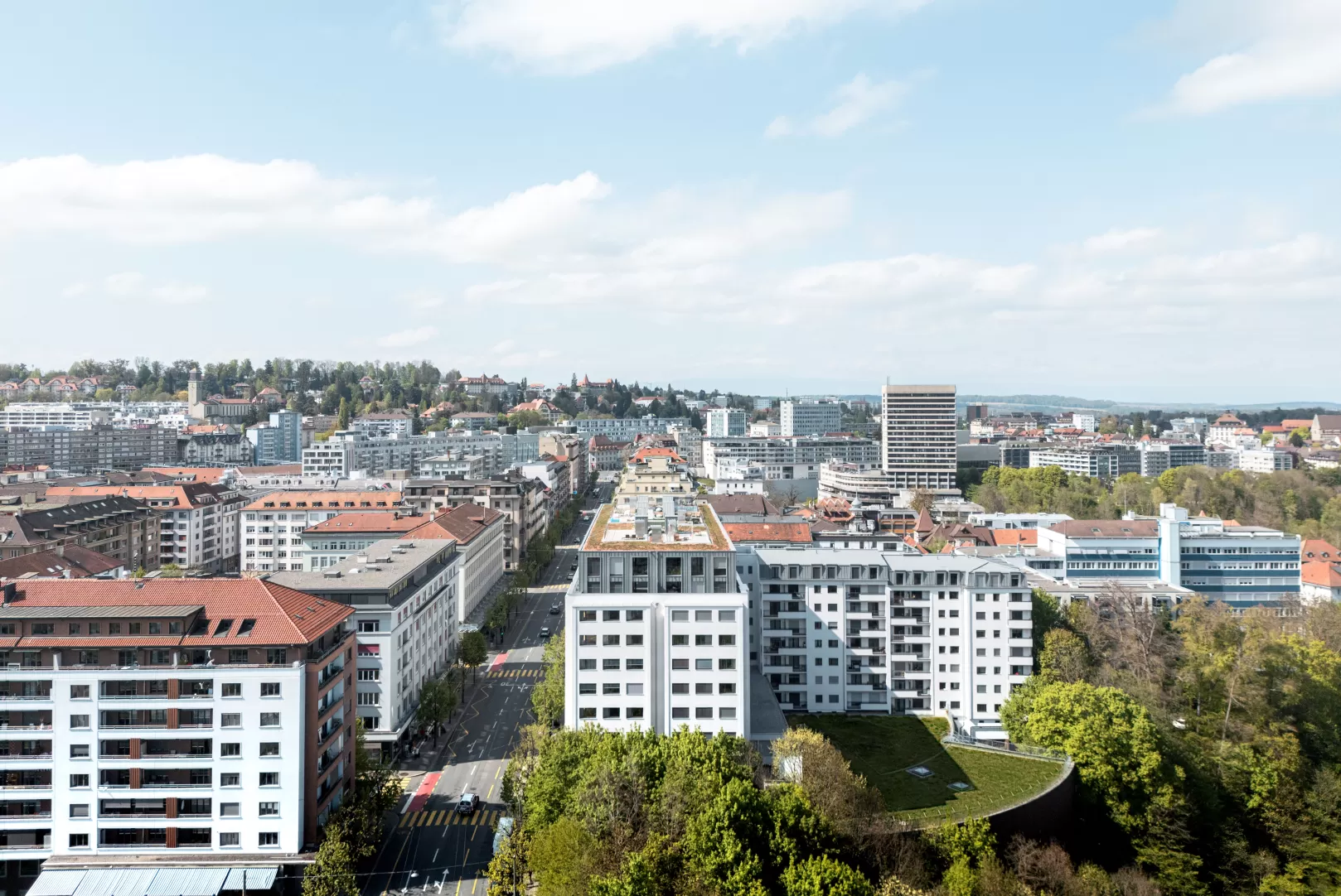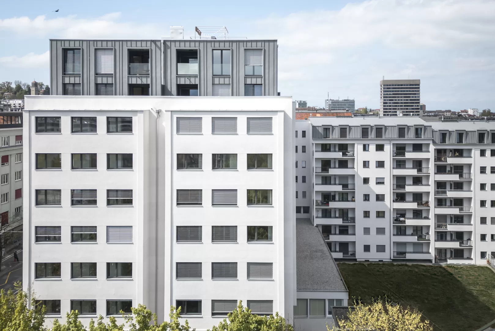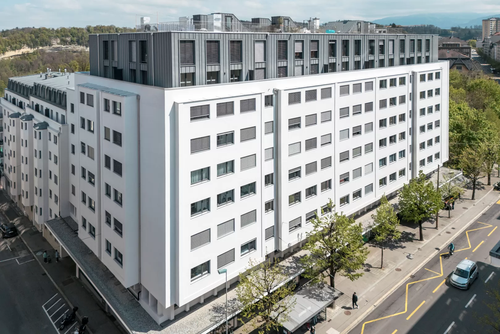 An zentraler Lage in Fribourg wurde ein Gebäudekomplex der PKE CPE mit 162 Wohnungen renoviert und aufgestockt. Die Gebäude aus den 50er-Jahren wurden in Bezug auf die Gebäudehülle, die technischen Anlagen und die Energieeffizienz modernisiert. Die Arbeiten umfassten die Renovierung von Küchen, Bädern, Böden, Wänden und Decken. Ausserdem konnten Keller, technische Räume, Lager und Büros geschaffen und renoviert werden. Am Boulevard de Pérolles wurden zwei Stockwerke und an der Rue Vogt eine Etage aufgestockt. Die Gebäude sind mit begrünten Flachdächern und privaten Terrassen ausgestattet, und Wohnungen bieten eine aussergewöhnliche Aussicht.