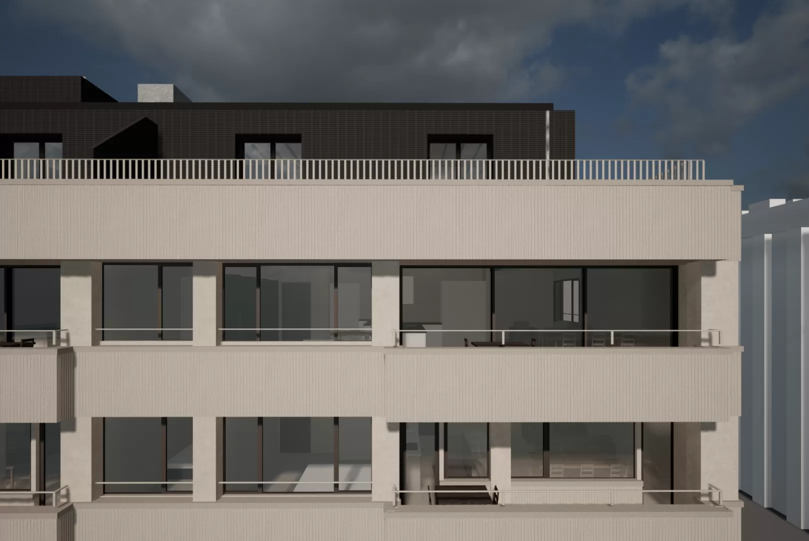 Die architektonische Weiterentwicklung knüpft an den Bestand an und nimmt Bezug auf das benachbarte Mehrfamilienhaus, dessen Fassaden ebenfalls erneuert werden. Die neuen Wohnungen bieten differenzierte Grundrisse und sind auf heutige Wohnformen ausgerichtet.