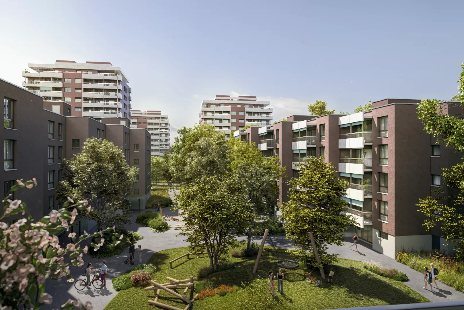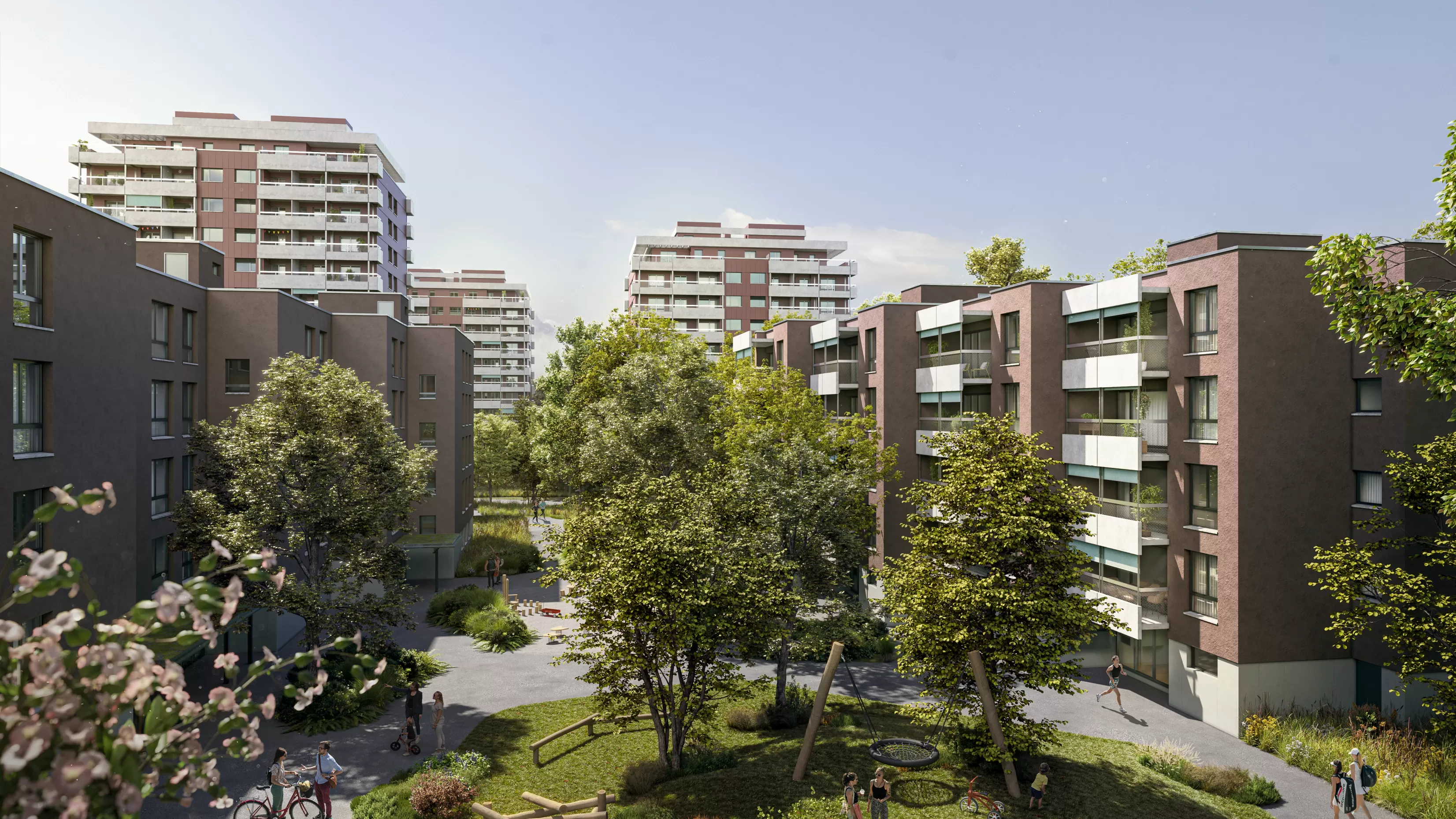 Der Dianapark, erbaut in den 1960er- und 1970er-Jahren, umfasst drei Hochhäuser und sieben Flachbauten mit insgesamt 243 Wohnungen. Im Zuge einer umfassenden Sanierung wird der Wohnkomplex modernisiert und um 57 Wohneinheiten erweitert, ohne die ursprüngliche Nutzfläche zu vergrössern. Nachhaltigkeit steht dabei im Mittelpunkt: Eine Photovoltaikanlage auf den Flachdächern, ein moderner Fernwärmeanschluss und eine zentrale Eigenstrom-Verteilung sorgen für eine umweltfreundliche und zukunftsfähige Energieversorgung. Der Dianapark verbindet Tradition mit Innovation und bietet ein modernes, nachhaltiges Wohnumfeld.
