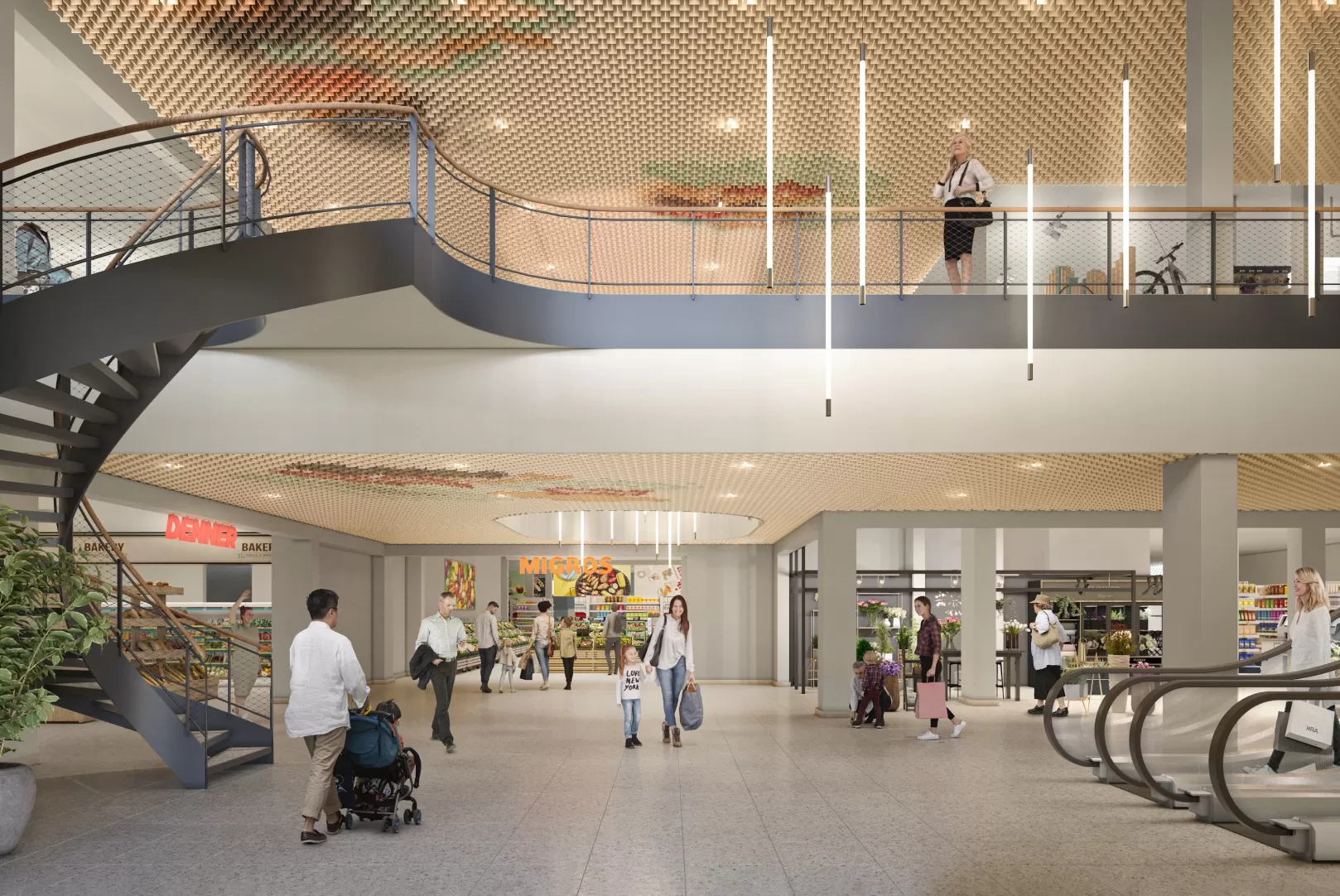 Das Einkaufs- und Geschäftszentrum im Winterthurer Neuhegi-Quartier wird einer umfassenden Modernisierung unterzogen, bei der Architektur, Funktionalität und Nachhaltigkeit im Fokus stehen. Die Gebäudehülle wird in einem zeitgemässen Stil renoviert, wodurch die ästhetische Qualität und Energieeffizienz gesteigert werden. Ergänzend dazu wird die Signaletik neu konzipiert, um eine klare Orientierung und ein harmonisches Erscheinungsbild zu gewährleisten. Die Flachdachsanierung bietet die Grundlage für die Integration einer Photovoltaikanlage, die den Eigenstrombedarf des Centers deckt. In Kombination mit der bestehenden Fernwärmeversorgung entsteht ein nachhaltiges und energieeffizientes Heizsystem, das den ökologischen Ansprüchen moderner Immobilien entspricht. Im Inneren des Zentrums wird eine vollständige Erneuerung umgesetzt. Helle Farbtöne an Wänden und Böden sowie ein neu entwickeltes Beleuchtungskonzept schaffen eine einladende Atmosphäre und optimieren die Aufenthaltsqualität. Die Nasszellen werden modernisiert, während Aufenthaltszonen in der Mall ein neues, nutzerfreundliches Design erhalten.Zusätzlich werden für die Post und Prim Food zeitgemässe und funktionale Ladenflächen realisiert. Die Anlieferungsbereiche erfahren eine Erweiterung.