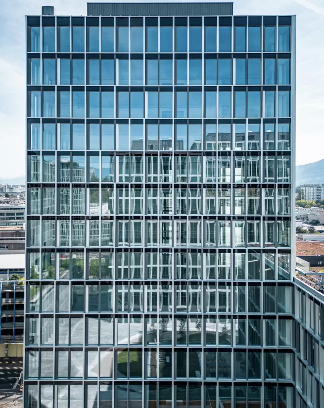Esplanade 3 befindet sich im Herzen des Geschäftsviertels Pont-Rouge, wo viele nationale und internationale Unternehmen ihren Sitz haben. Dieses symbolträchtige Projekt zeichnet sich durch sein modernes und helles Design aus und bietet Geschäfts- und Verwaltungsflächen. Esplanade 3 wurde für seine Energieeffizienz mit dem Minergie-Zertifikat ausgezeichnet und umfasst zwei grosse, begrünte Terrassen, die den Mietern zugänglich sind und eine angenehme Arbeitsumgebung schaffen. Dank der hervorragenden Erreichbarkeit mit verschiedenen Verkehrsmitteln und der Nähe zum Genfer Hyperzentrum und dem Flughafen Genf, ist Esplanade 3 ein idealer Standort in diesem neuen und dynamischen Stadtzentrum.