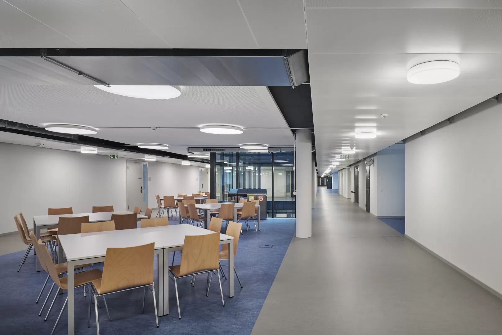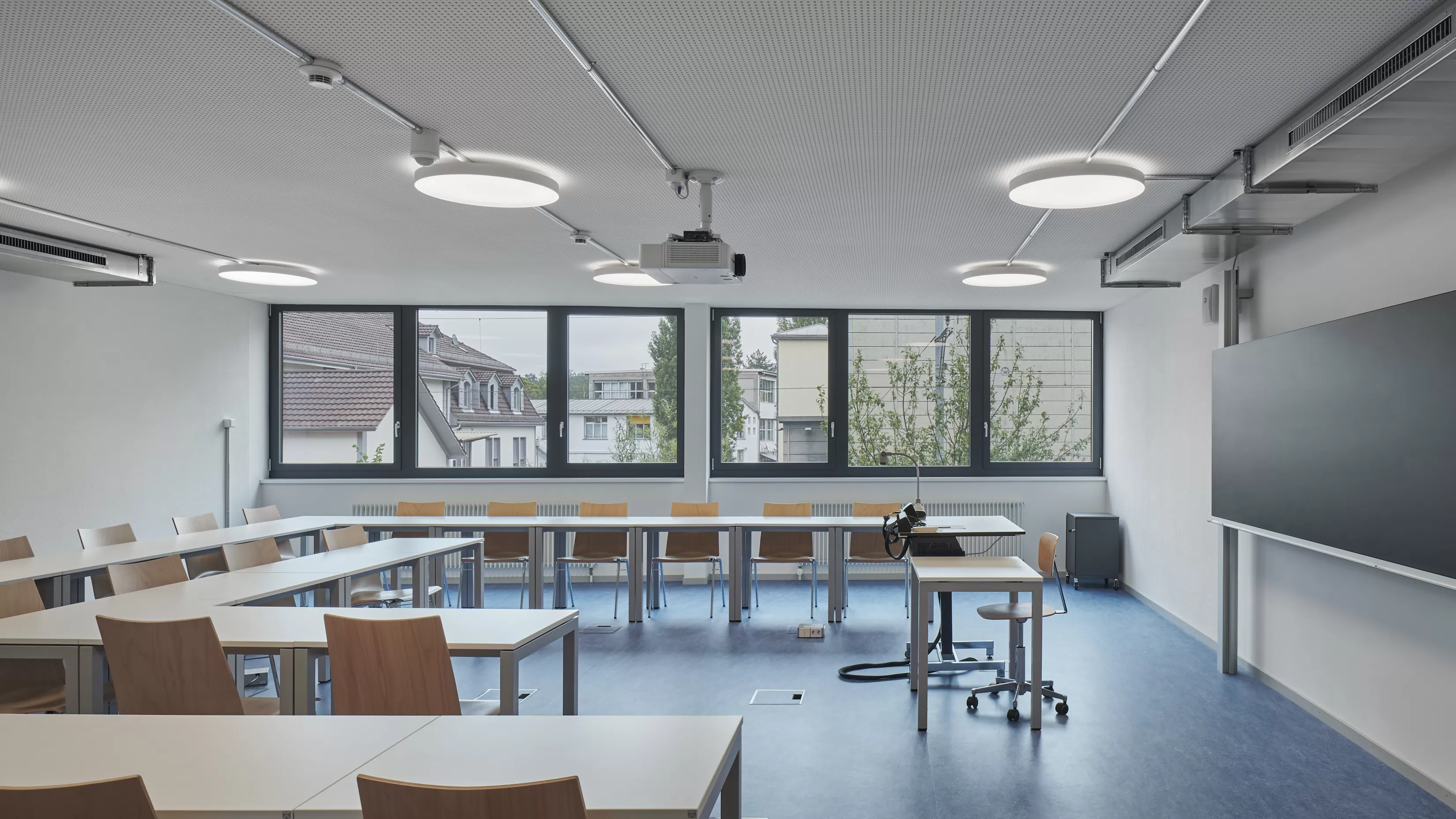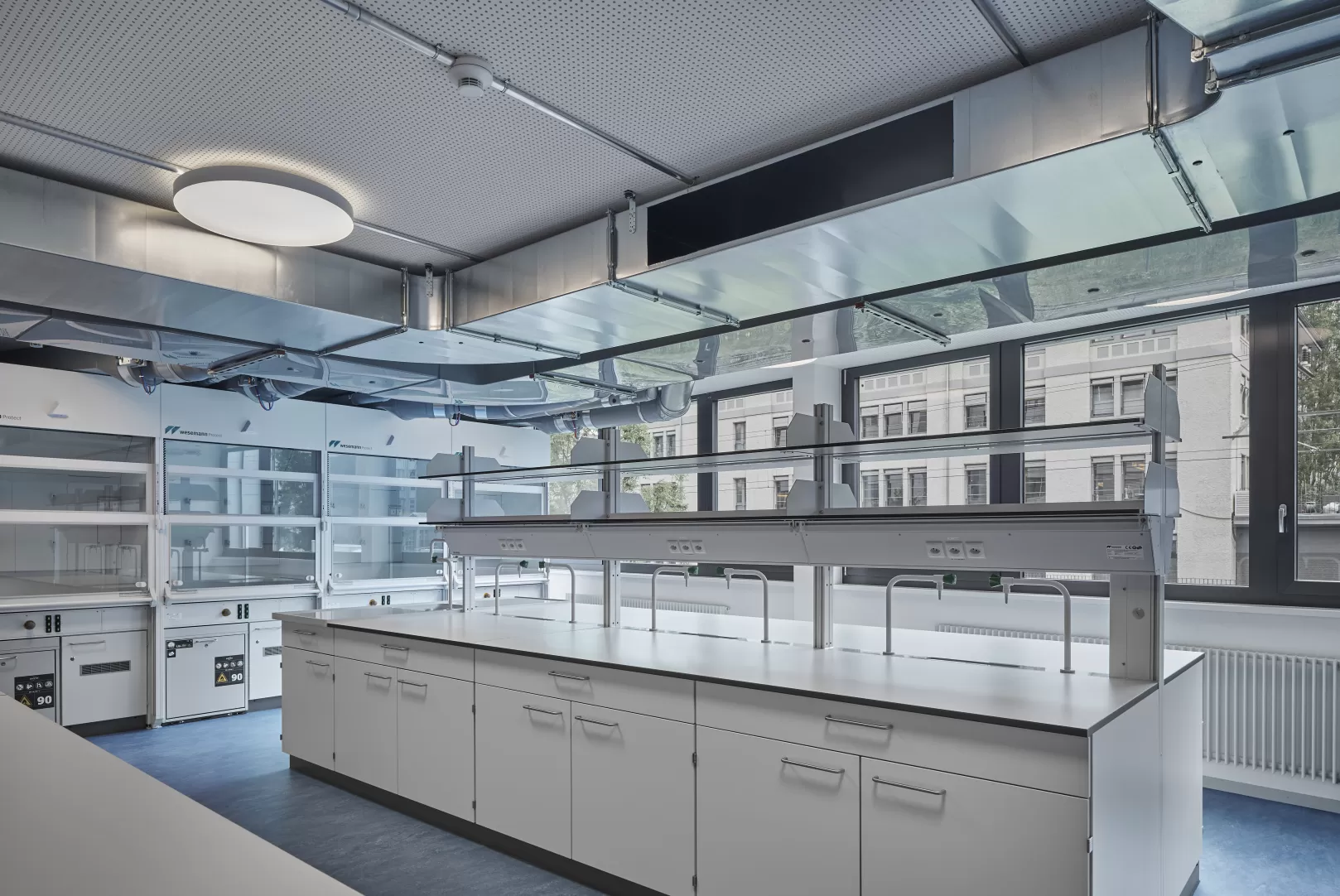 Sieben Geschosse des ehemaligen Swisscom-Gebäudes in Liebefeld bei Köniz werden in zwei Etappen zu Schulräumen umgebaut. Auf dem Dach entstand ein neuer Monoblock für die Laborräume. Die gesamten technischen Einrichtungen sind im neu erstellten Verbund-Doppelboden integriert. In knapp 9 Monaten wurde die 1. Etappe inklusive der Umgebungsarbeiten auf engen Platzverhältnissen fertiggestellt.