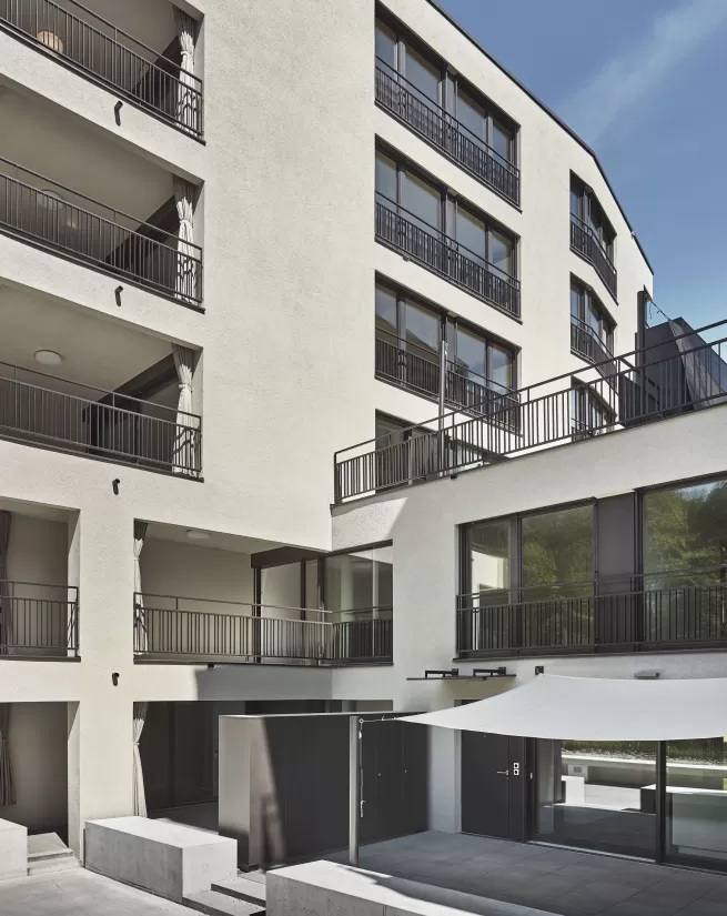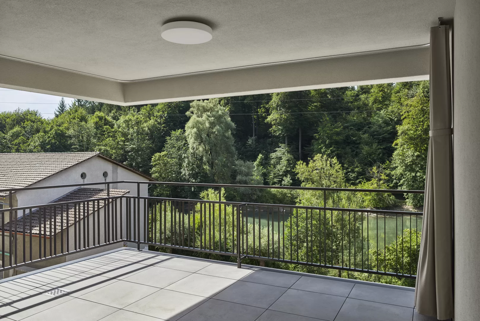 Auf geschichtsträchtigem Boden in Worblaufen, am Ufer der Aare, mitten in der friedlichen Natur und ganz nah bei der Stadt Bern wurde das bisher industriell genutzte Areal am Schmiedeweg zu neuem Leben erweckt. Hier entstand eine qualitativ hochstehende Wohnsiedlung mit grosszügigem und vielfältigem Raumangebot. Die fünf sechsstöckigen Gebäude mit dazwischengeschalteten zweistöckigen Verbindungsbauten wurden stimmig in die Umgebung integriert. Eine Promenade mit schönster und direkter Aaresicht verbindet diese Häuser. Das Herz des Quartiers bildet die älteste wasserbetriebene Hammeranlage der Schweiz.