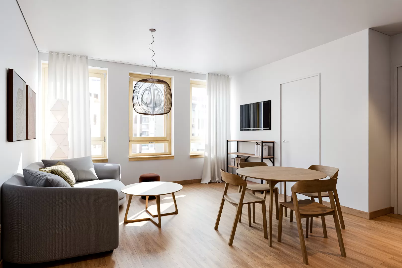 Das Projekt Motta liegt im Genfer Nations-Quartier und transformiert ein 1982 errichtetes Bürogebäude, das bislang von einer NGO genutzt wurde. Prägend ist seine dreieckige Geometrie, die sich über sechs Obergeschosse, zwei Erdgeschosse und drei Untergeschosse entwickelt. Die bestehende Struktur wird zu einem Wohngebäude weiterentwickelt. Im Erdgeschoss entsteht eine gemischte Nutzung mit administrativen und gewerblichen Flächen sowie Wohnungen. Insgesamt sind 86 Einheiten vorgesehen. Neben klassischen Wohnungstypologien kommen auch Einheiten mit dem System MOVEment zum Einsatz, das flexible Grundrisse und unterschiedliche Nutzungsformen ermöglicht. Die Transformation nutzt die vorhandene Bausubstanz als Ressource weiter und stärkt die Wohnnutzung in einem zentral gelegenen Stadtteil Genfs.