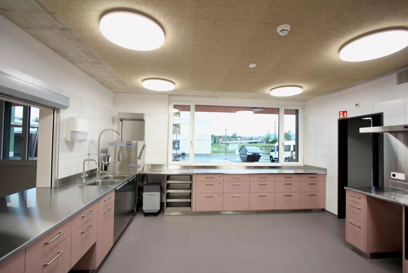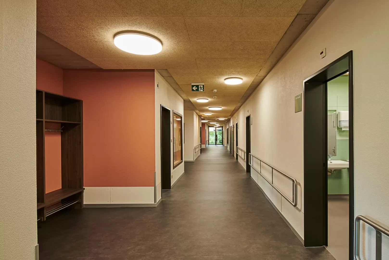 Design to cost Entwicklung und Realisierung eines Internats- und eines Schulgebäudes unter Berücksichtigung der besonderen Bedürfnisse einer Institution für Menschen mit geistiger Behinderung. Teil des Schulgebäudes ist ein Pflegebad, welches auch von externen Nutzern in Anspruch genommen werden kann. Dank enger, partnerschaftlicher und transparenter Zusammenarbeit mit der Bauherrschaft und der Betreiberin konnte im Rahmen der Entwicklung insbesondere bezüglich Qualität, Kosten und Terminen das Optimum erreicht und das Gesamtprojekt termingerecht übergeben werden.
