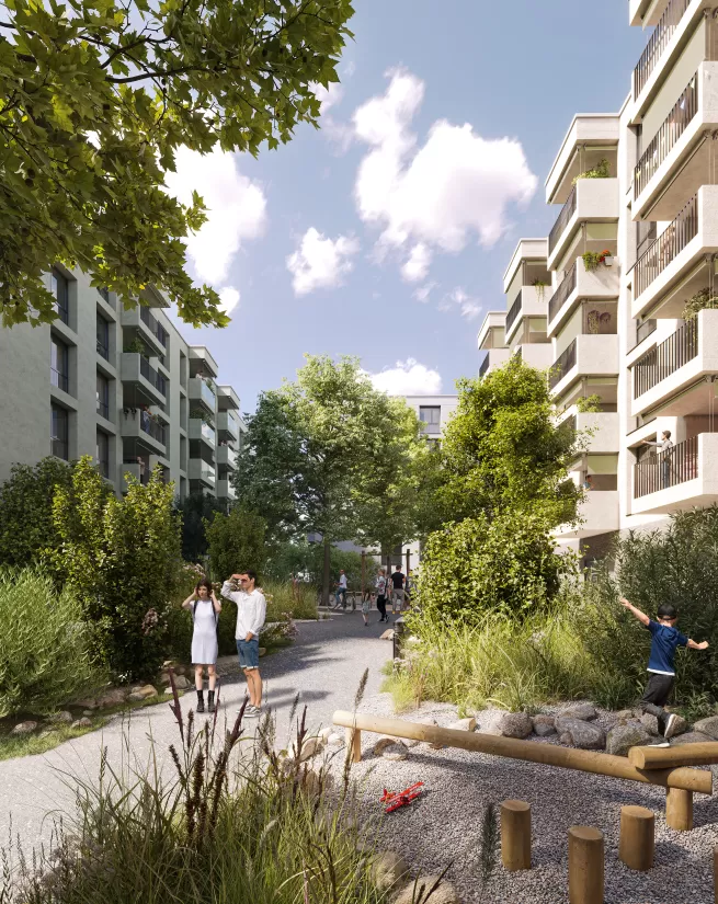 In Luzern-Nord liegt der grösste Entwicklungsschwerpunkt des Kantons und mit dem Seetalplatz die wichtigste Verkehrsdrehscheibe der Zentralschweiz. Das Gebiet um den Seetalplatz wird sich in den nächsten Jahren zu einem modernen Wohn- und Wirtschaftszentrum entwickeln. Hier entsteht ein lebendiges Quartier mit Eigentums- und Genossenschaftswohnungen, Gewerbenutzungen und einem identitätsstiftenden Freiraum mit hoher Aufenthaltsqualität direkt am Fluss. Im Rüüssegg findet man die ideale Balance zwischen Gemeinschaft und Rückzugsort, zwischen Austausch und Entspannung.