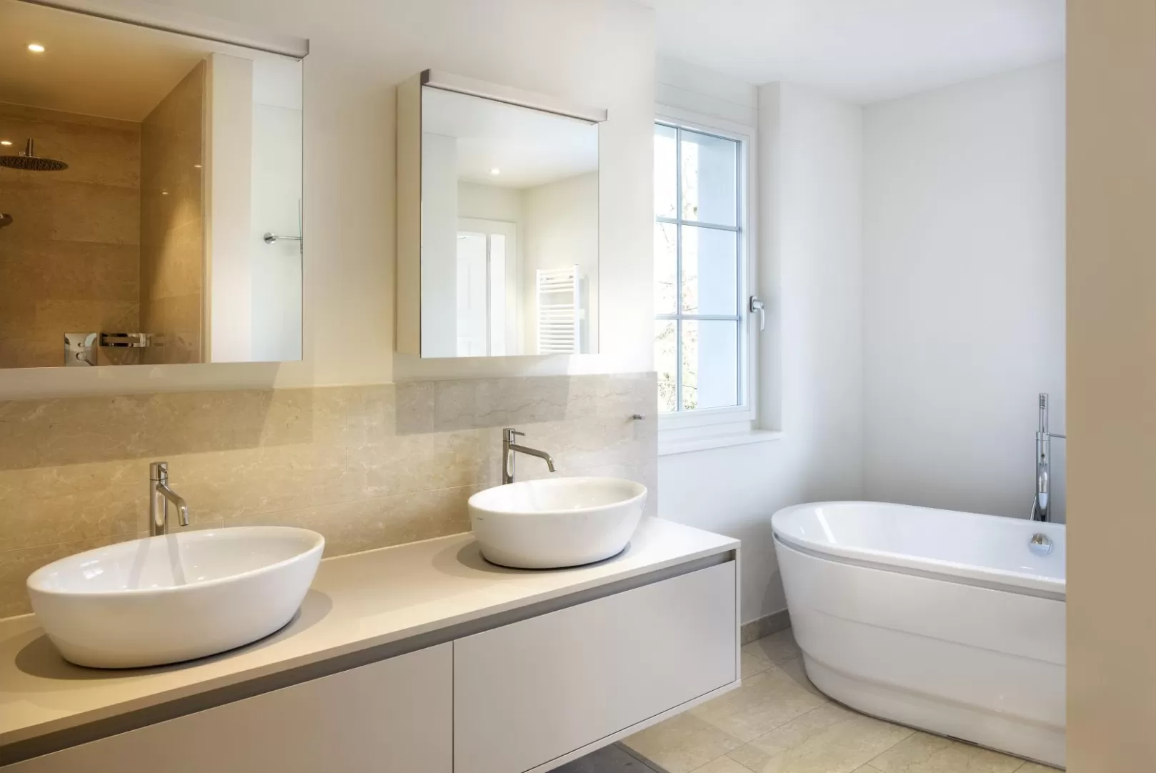 Sanierung des bestehenden Gebäudes sowie Erstellung eines Anbaus mit Tunnelzugang zur Garage. Der Anbau mit Aufzug ist einerseits das komfortable Verbindungsstück zwischen der Garage und dem Wohnbereich, andererseits konnte mit dem Anbau die Wohnfläche erheblich vergrössert werden. Weiter wurde das ganze Haus mit einer Fussbodenheizung nachgerüstet. Hochwertige Oberflächen und originalgetreu renovierte Ausbau-details zeichnen den prestigevollen Charakter der Immobilie aus.