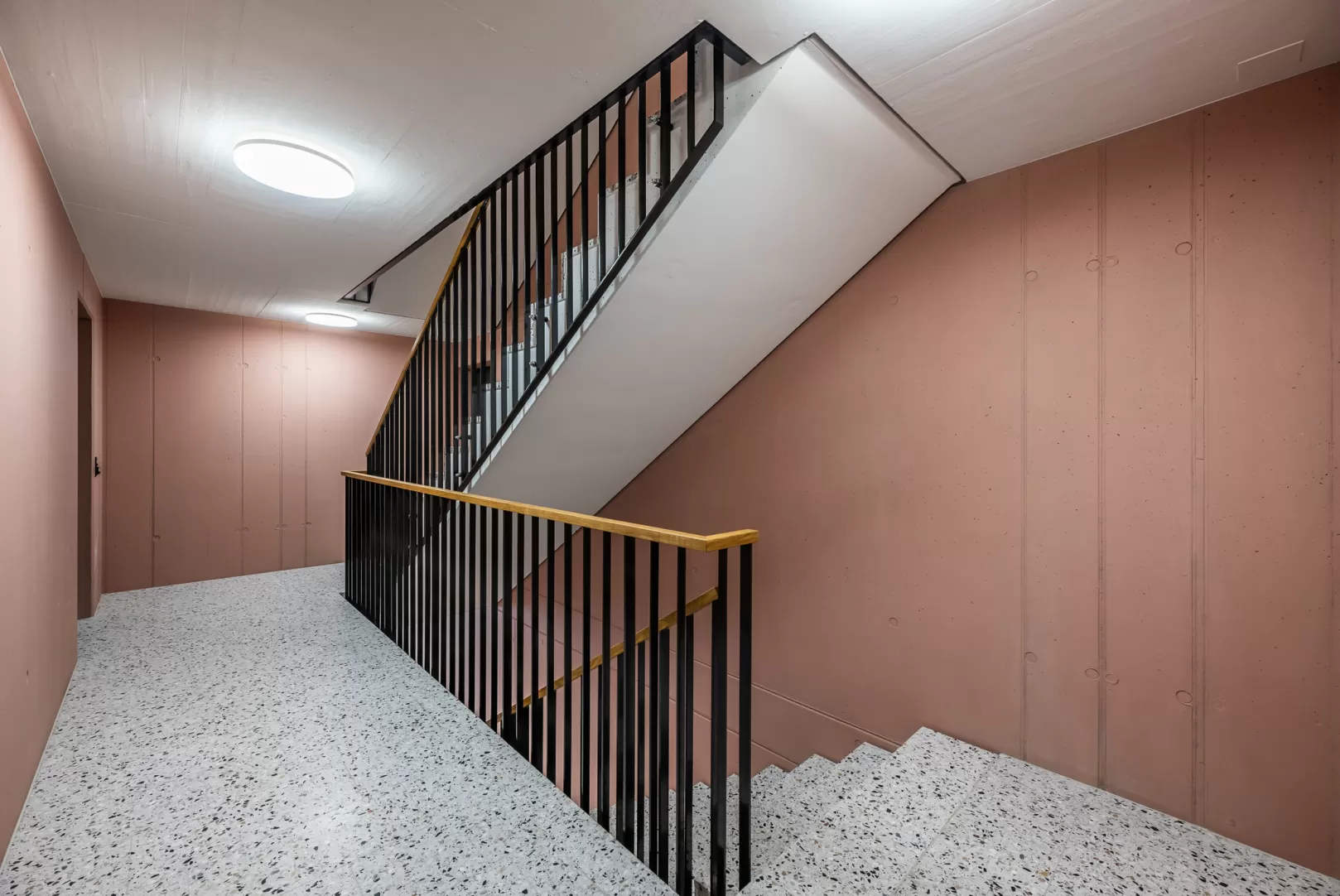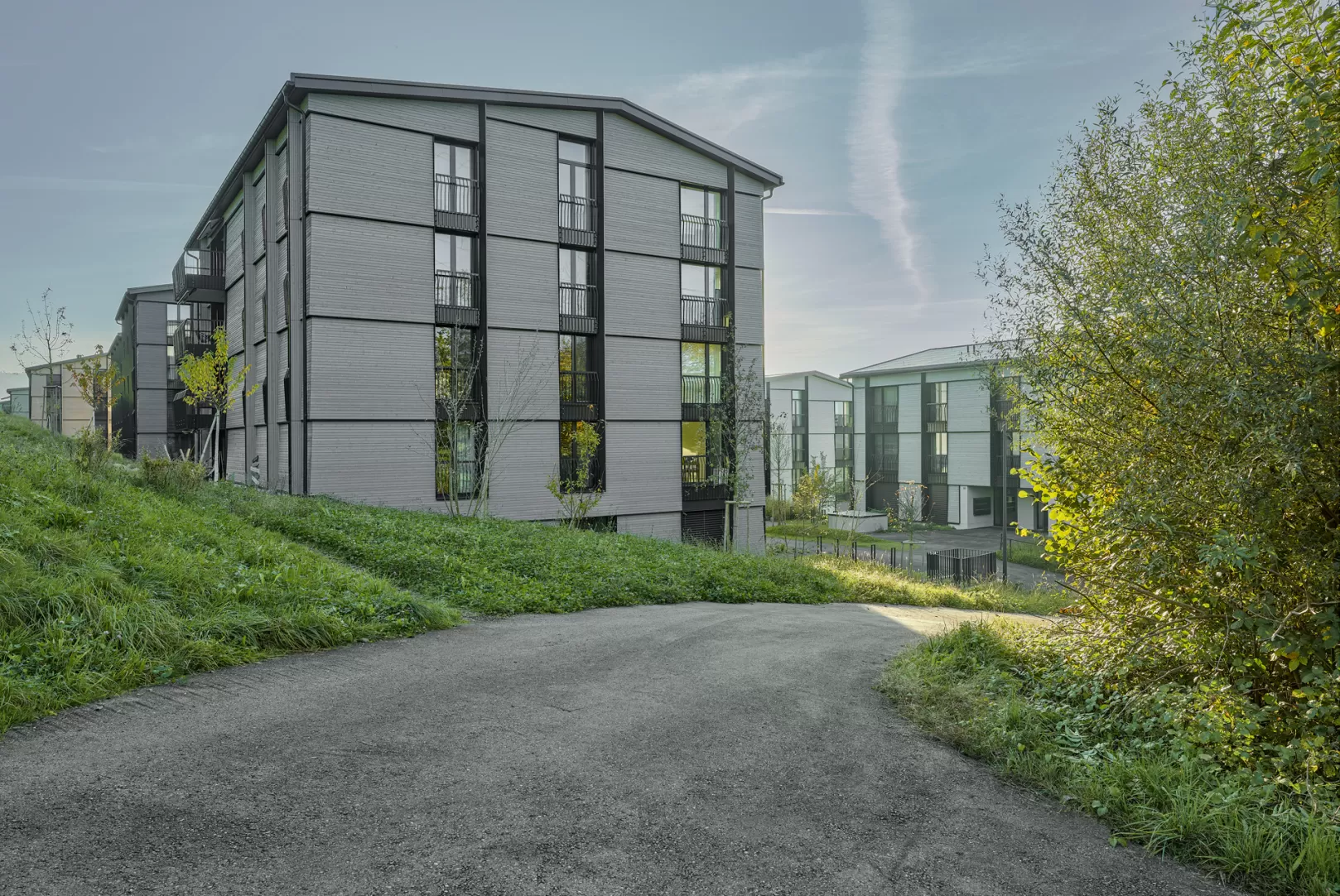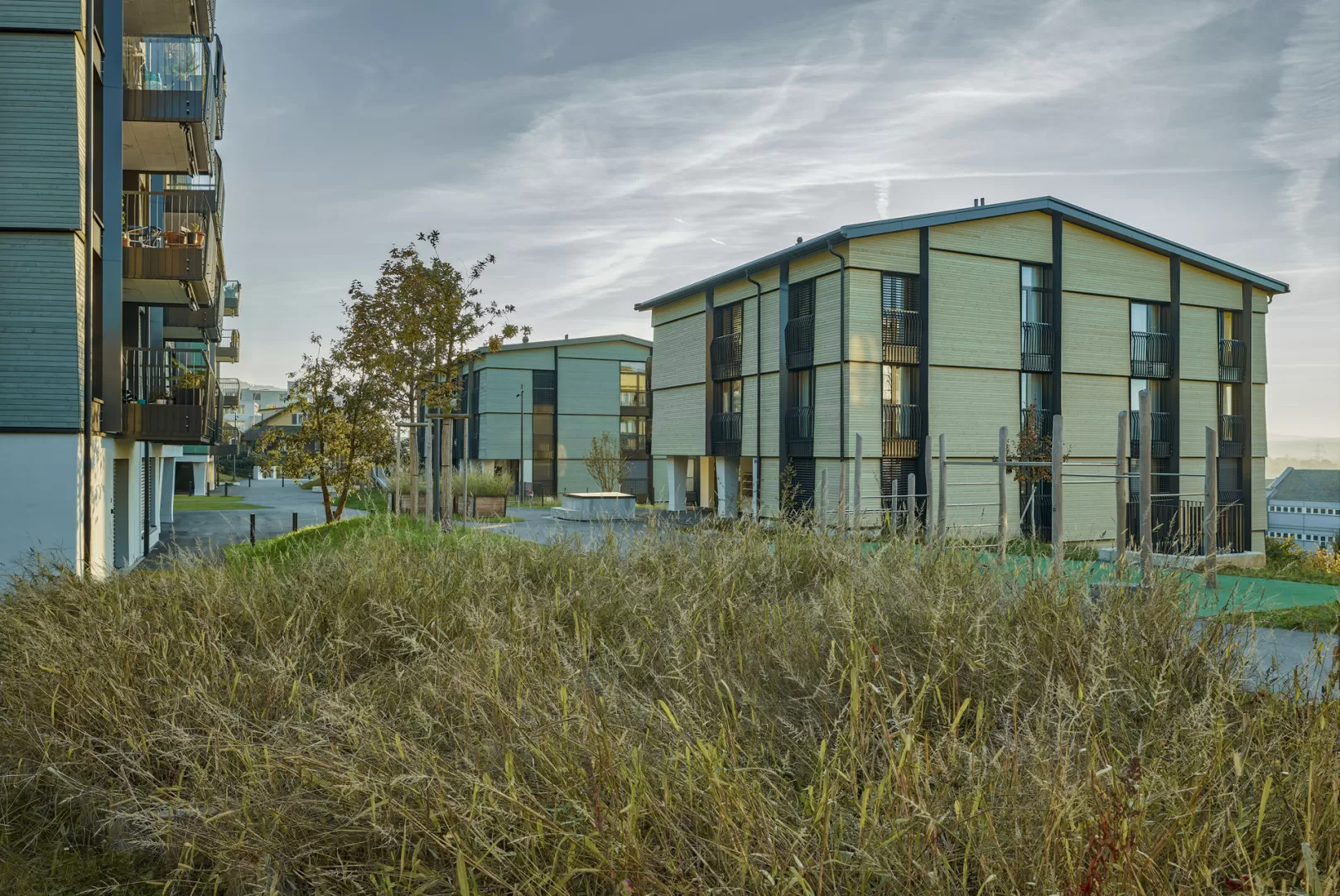 An einem sonnigen Westhang über dem Rontal wurde zusammen mit der Stiftung Abendrot eine Wohnüberbauung, in der dem teilgemeinschaftlichen Wohnen grosse Bedeutung geschenkt wird, realisiert. Das äussere Erscheinungsbild der Gebäude wurde durch traditionelle Steildächer und hinterlüftete Fassaden aus Holz geprägt. Die Verwendung natürlicher Baumaterialien ermöglichte eine authentische Integration der Strukturen in die organische Umgebung.