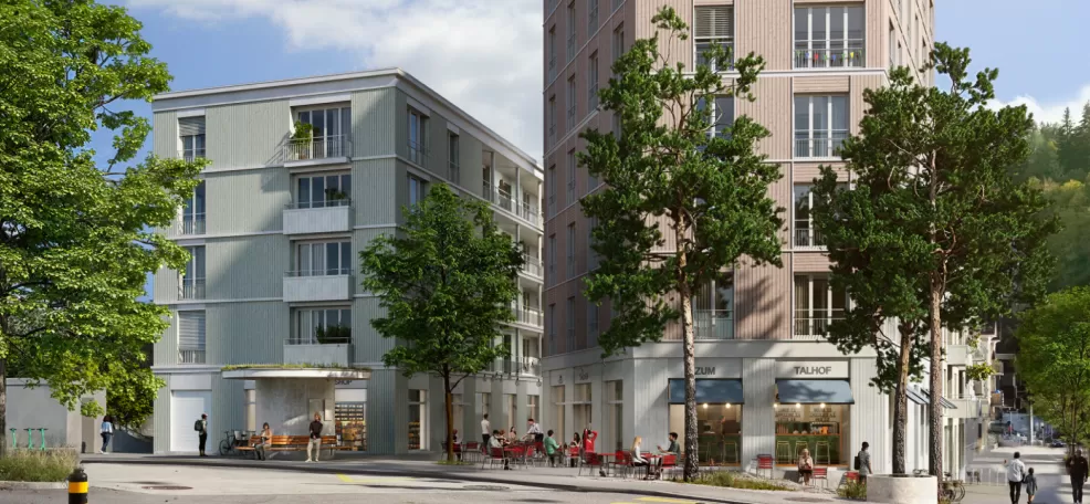 Together with Pfister Klingenfuss Architekten AG and the landscape architects from Kollektiv Nordost, an ensemble was developed that combines urban living, public-oriented uses and good access to the Appenzeller Bahn railway. At the centre of the complex will be a newly designed inner courtyard, which will form the transition between the neighbourhood square and the communal outdoor space and is intended to strengthen neighbourly relations.