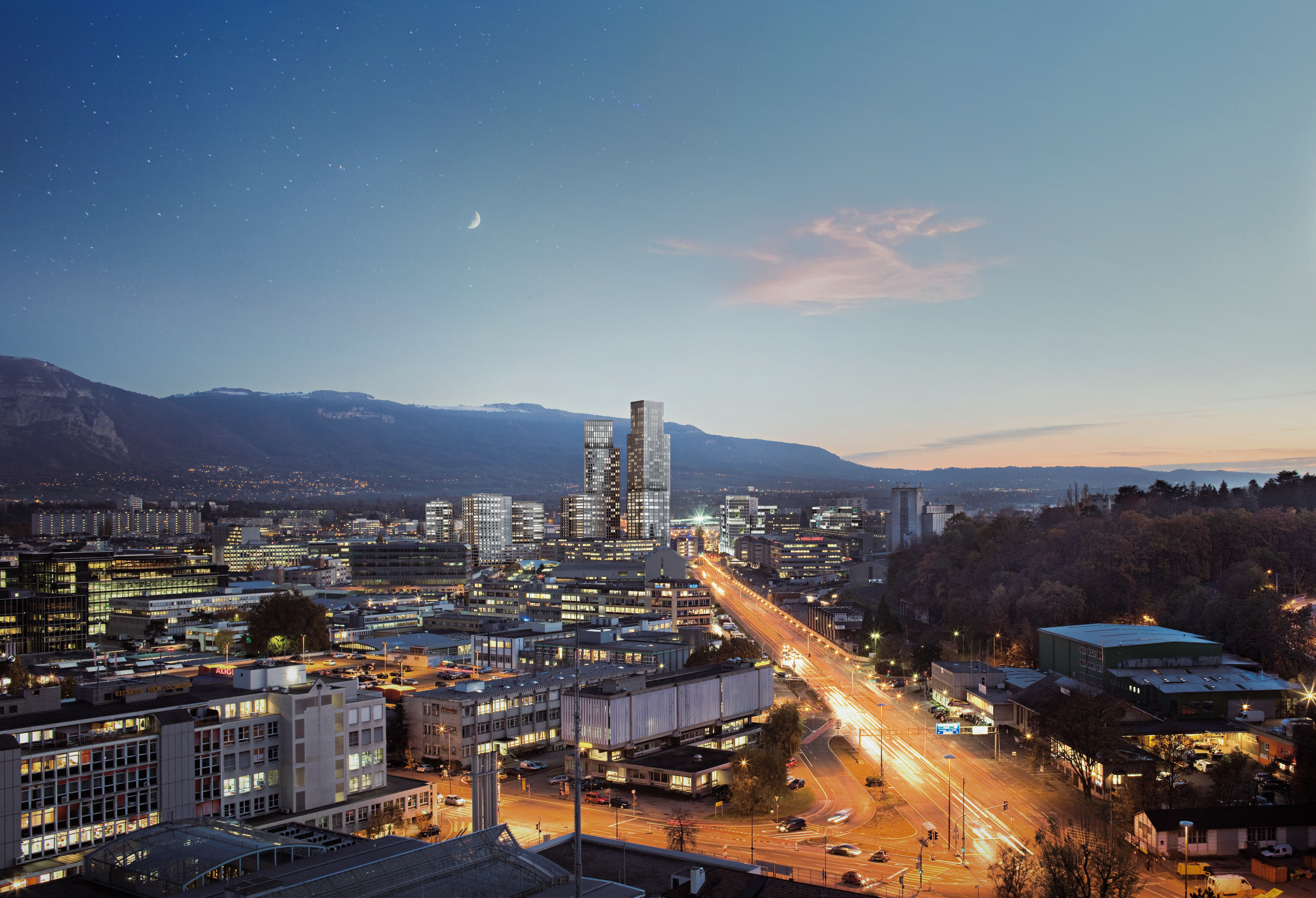 Le quartier de l'Étoile, une nouvelle centralité pour Genève, se caractérise notamment par des bâtiments de grande hauteur, dont deux tours de quelque 170 mètres.