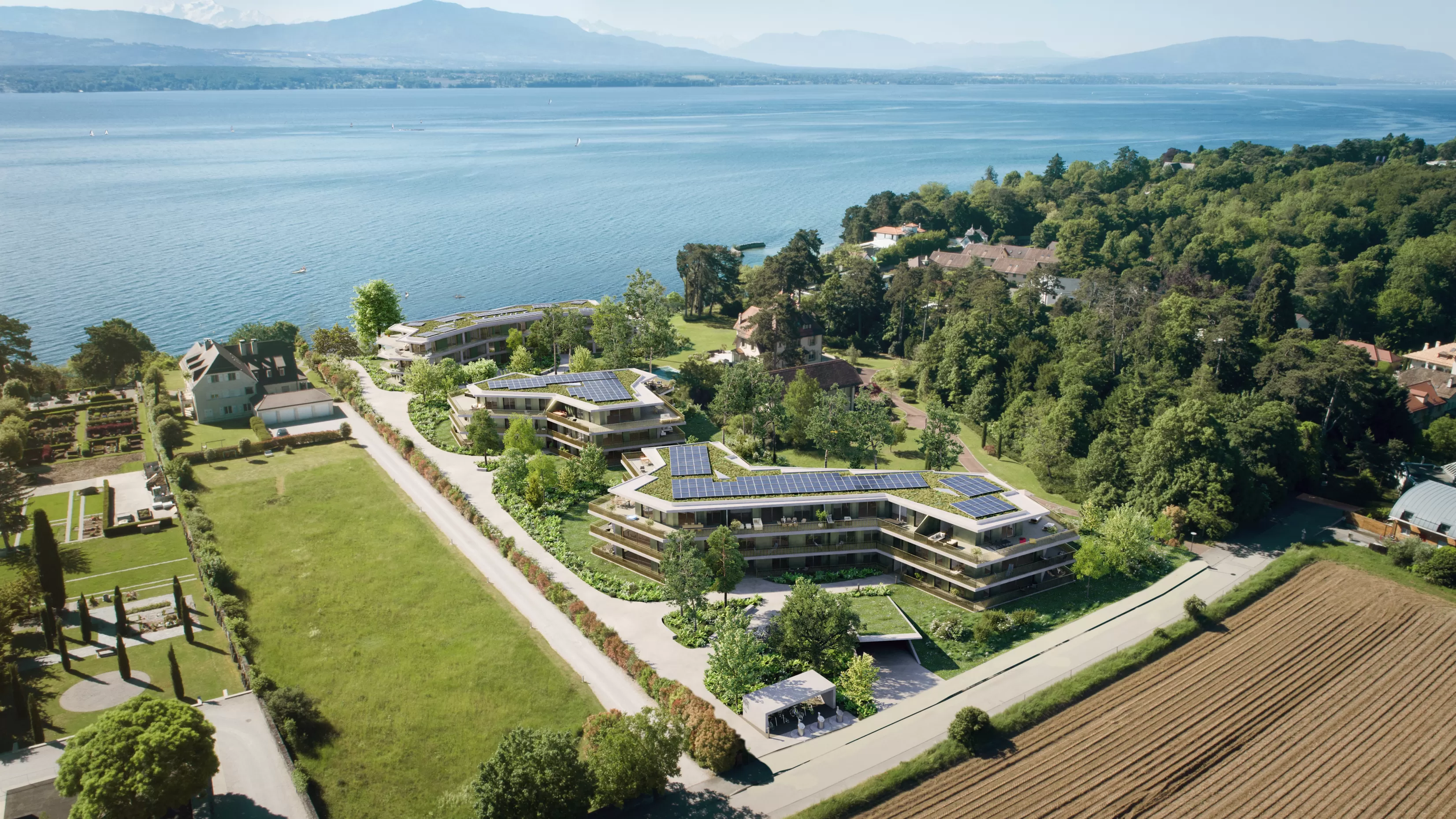 Le Domaine du Lac bénéficie d’un emplacement privilégié au bord du lac, à quelques pas seulement de la plage de Nyon. Composé de 49 appartements haut de gamme, modernes, lumineux et spacieux, il s’étend sur trois bâtiments distincts : Jura, Parc et Lac. Niché au cœur d’un magnifique parc arboré, le domaine offre un cadre paisible et serein. Entièrement piétonnier grâce à deux parkings souterrains, il garantit tranquillité et sécurité. Chaque bâtiment dispose d’accès extérieurs spacieux et de places de stationnement dédiées aux vélos.